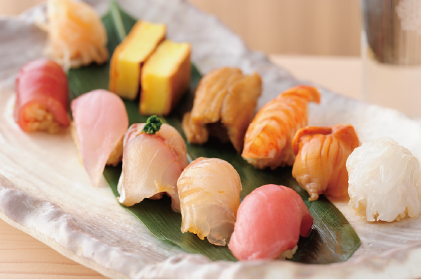 大阪天満宮でその日に仕入れた新鮮な魚介類を下処理、時間と手間を惜しまず、職人が一つ一つ心を込めて丁寧に仕込み、仕上げたネタとこだわりの舎利が織りなす本格江戸前鮨をご堪能頂けます。
